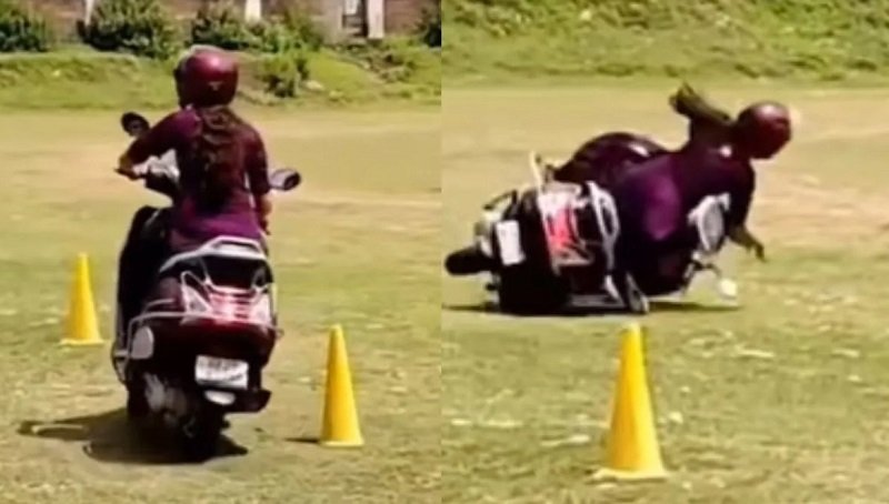 सोशल मीडिया पर इन दिनों ऐसा ही एक ड्राइविंग टेस्ट से जुड़ा वीडियो वायरल हो रहा है, जिसने इंटरनेट पर तहलका मचा दिया है. दरअसल, इस वीडियो में एक लड़की स्कूटी का ड्राइविंग टेस्ट देती नजर आती है, लेकिन सिर्फ 10 सेकंड में ही वो फेल हो जाती है और स्कूटी सहित गिर जाती है।
