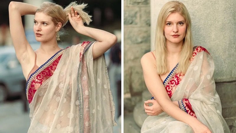 GermanGirlSaree : जर्मन लड़की की साड़ी में तस्वीरें, दीवाने हुए लोग :- इस लड़की का नाम लिज है, जो जर्मन की रहने वाली है और एक व्लॉगर है. लिज अक्सर भारत आती हैं और यहां के कल्चर को एक्सप्लोर करती हैं।